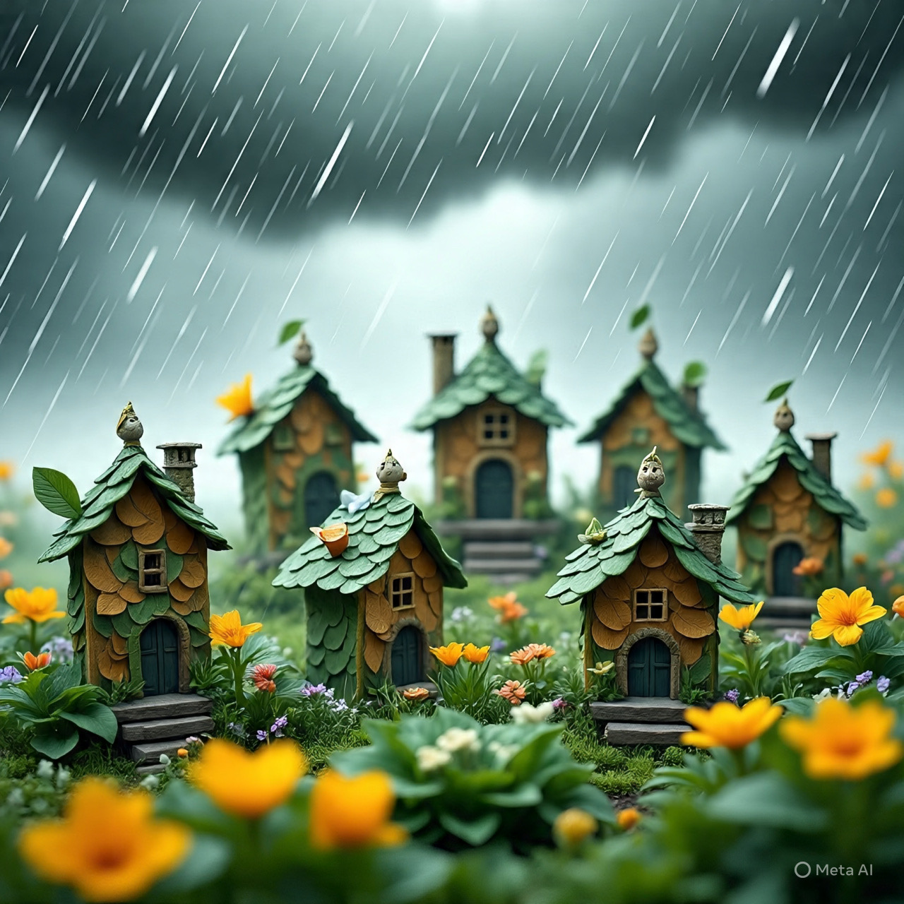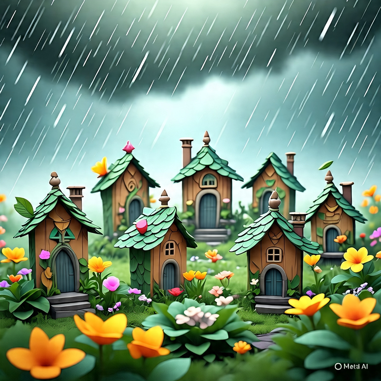 أصبحت الغيوم داكنة والرياح قوية، وبدأت عاصفة قوية تتشكل فوق قرية الجنيات الصغيرة.