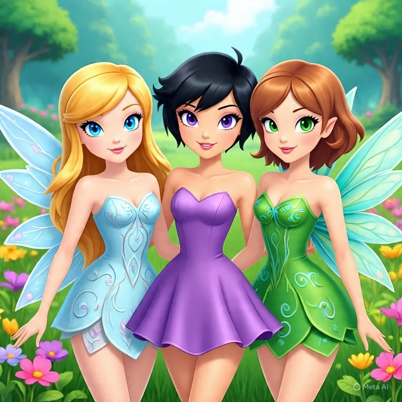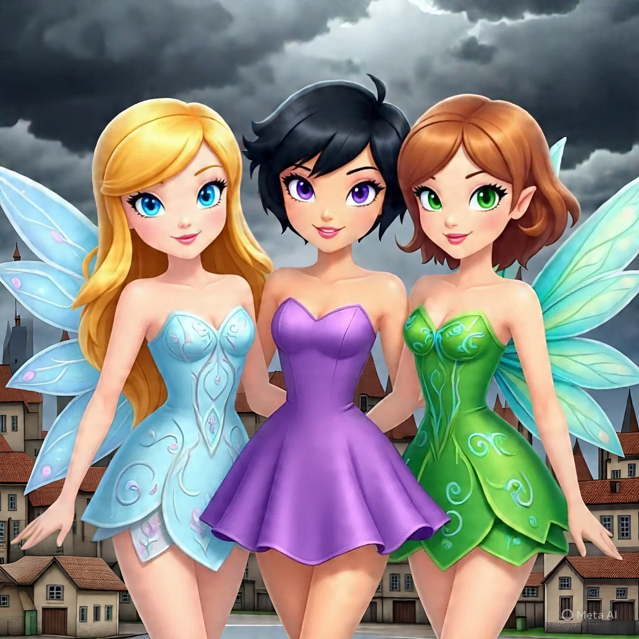 كانت الصديقات الثلاثة لا يفترقن أبدًا، وكانوا يقضين أيامهم في استكشاف قرية الجنيات الصغيرة والقيامبالمغامرات.
