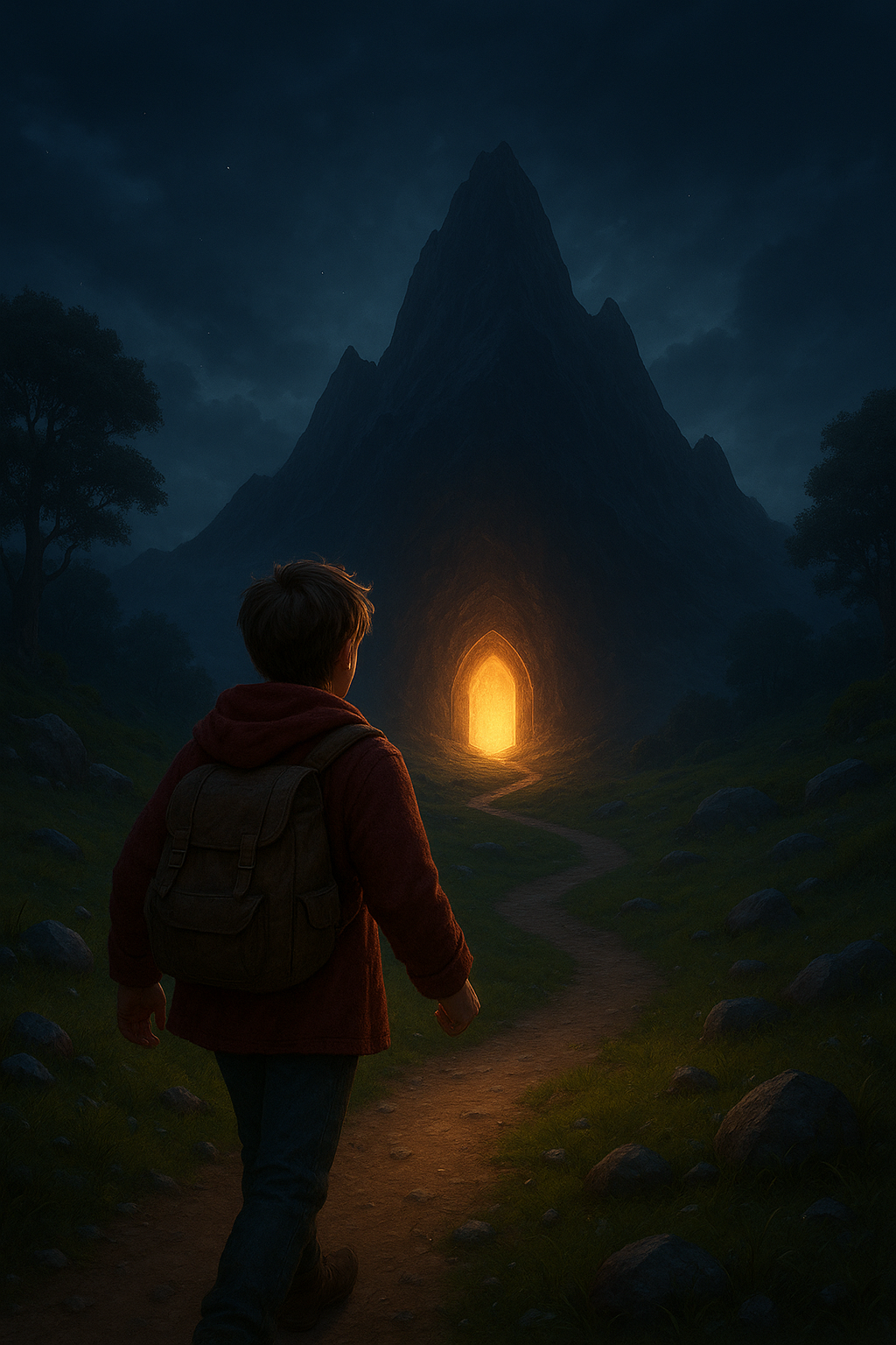 وصل رامي لقمة الجبل وكان فيه باب نور كبير. الفراشة قالت له: