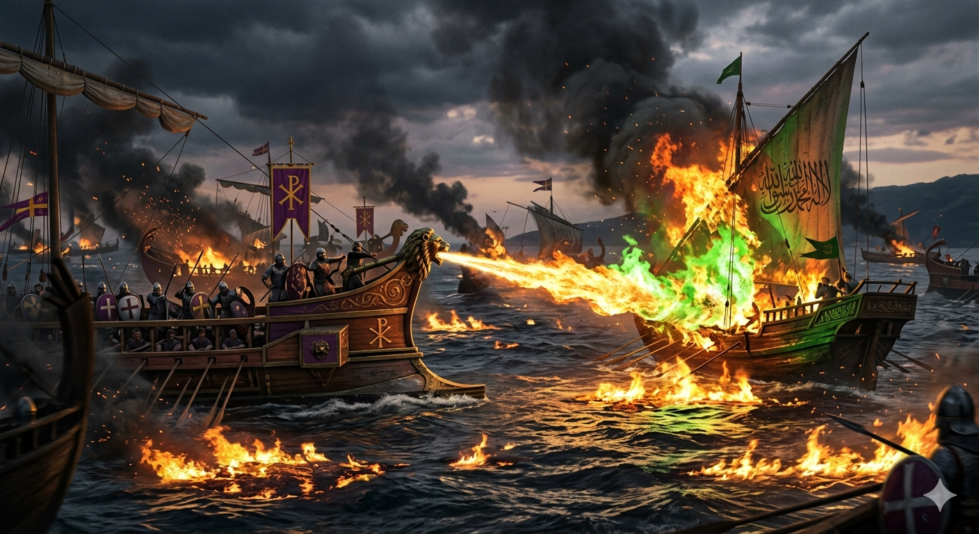 ​على مر العصور، امتلكت  الإمبراطوريات  أسلحة مكنتها من السيادة، لكن قليلاً منها ما أحاط به الغموض مثلما حدث مع "النار الإغريقية". كانت هذه المادة الكيميائية بمثابة "السر المقدس" للإمبراطورية  البيزنطية، والدرع الحصين الذي حمى القسطنطينية من السقوط لأكثر من ثمانية قرون.