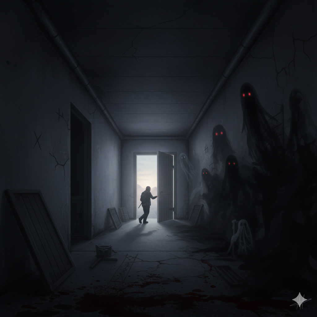في آخر لحظة، وجدوا بابًا صغيرًا يؤدي إلى الخارج 🌄. خرجوا منه وهم يرتجفون، وقلوبهم تخفق بشدة ❤️🔥، لكن لم يختفِ شعور الرعب. في السماء، رأوا ضوءًا خافتًا ينبعث من نافذة القبو 🌟، وكأنه يدعو الفضوليين للعودة مرة أخرى.