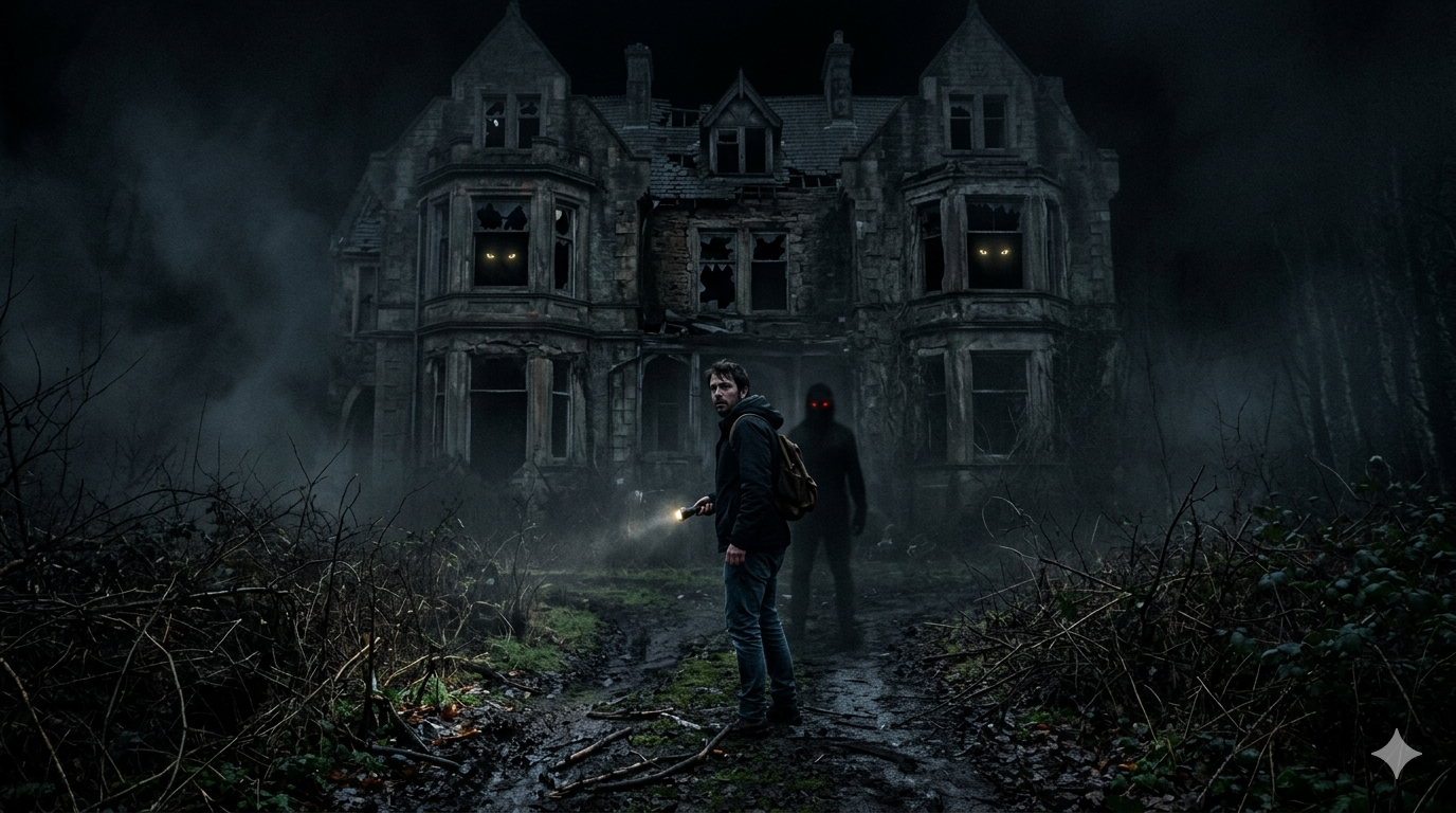 لم يكن هدفي سوى إثبات أن كل هذه القصص مجرد خرافات. حملت هاتفي وكشافًا صغيرًا، وسرت في الطريق الترابي حتى وصلت إلى البيت. كانت الساعة تقترب من منتصف الليل، والهدوء يملأ المكان بشكل مخيف.