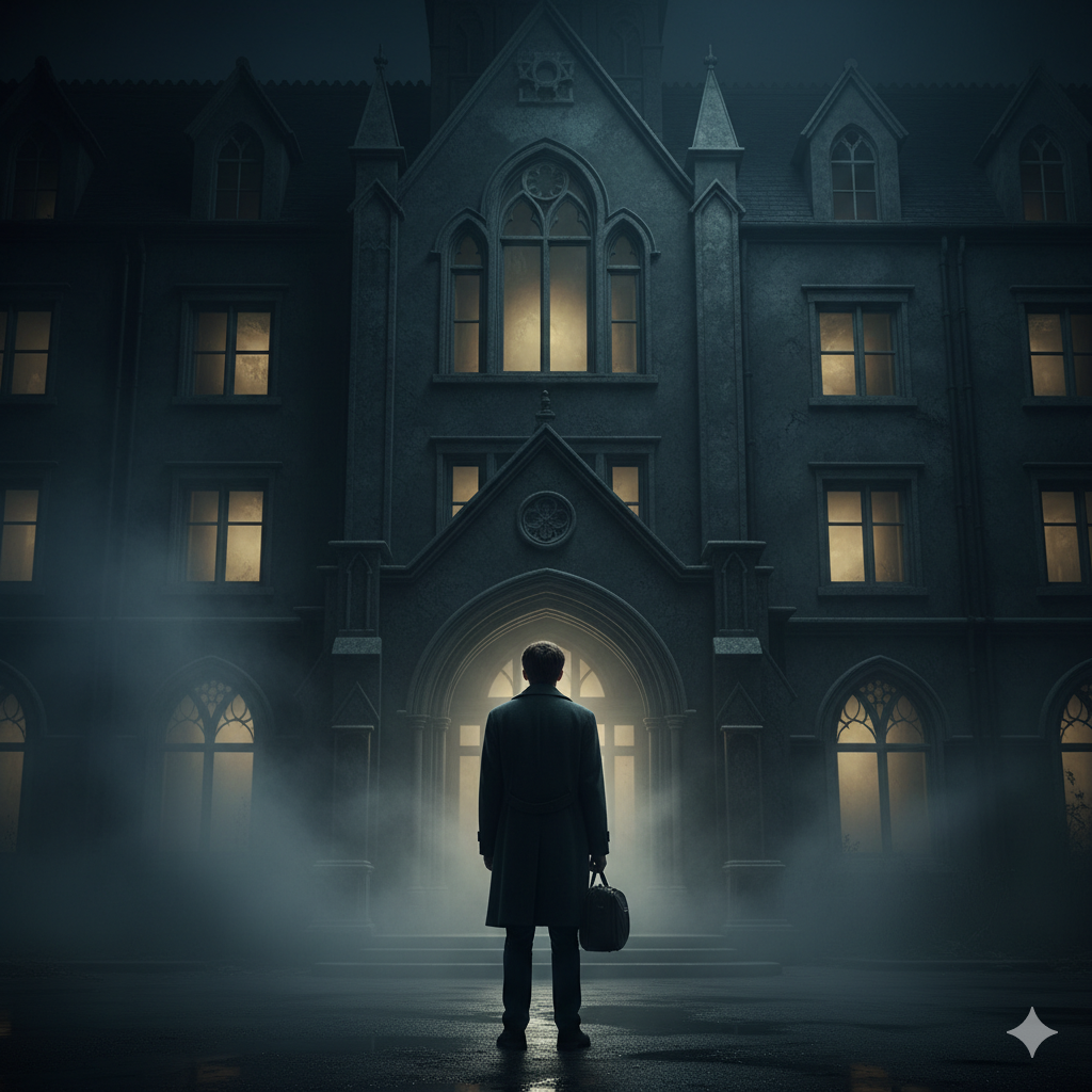 الضباب يملأ الشوارع 🌫️، والمباني القديمة تبدو كأنها تحمل قصصًا مخيفة من الماضي.