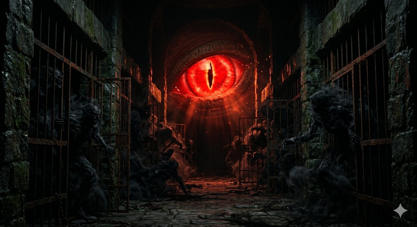 الجدران الحجرية القديمة بدأت تتشقق، وسلاسل الحديد كانت ترتطم ببعضها كأن المكان نفسه يصرخ.