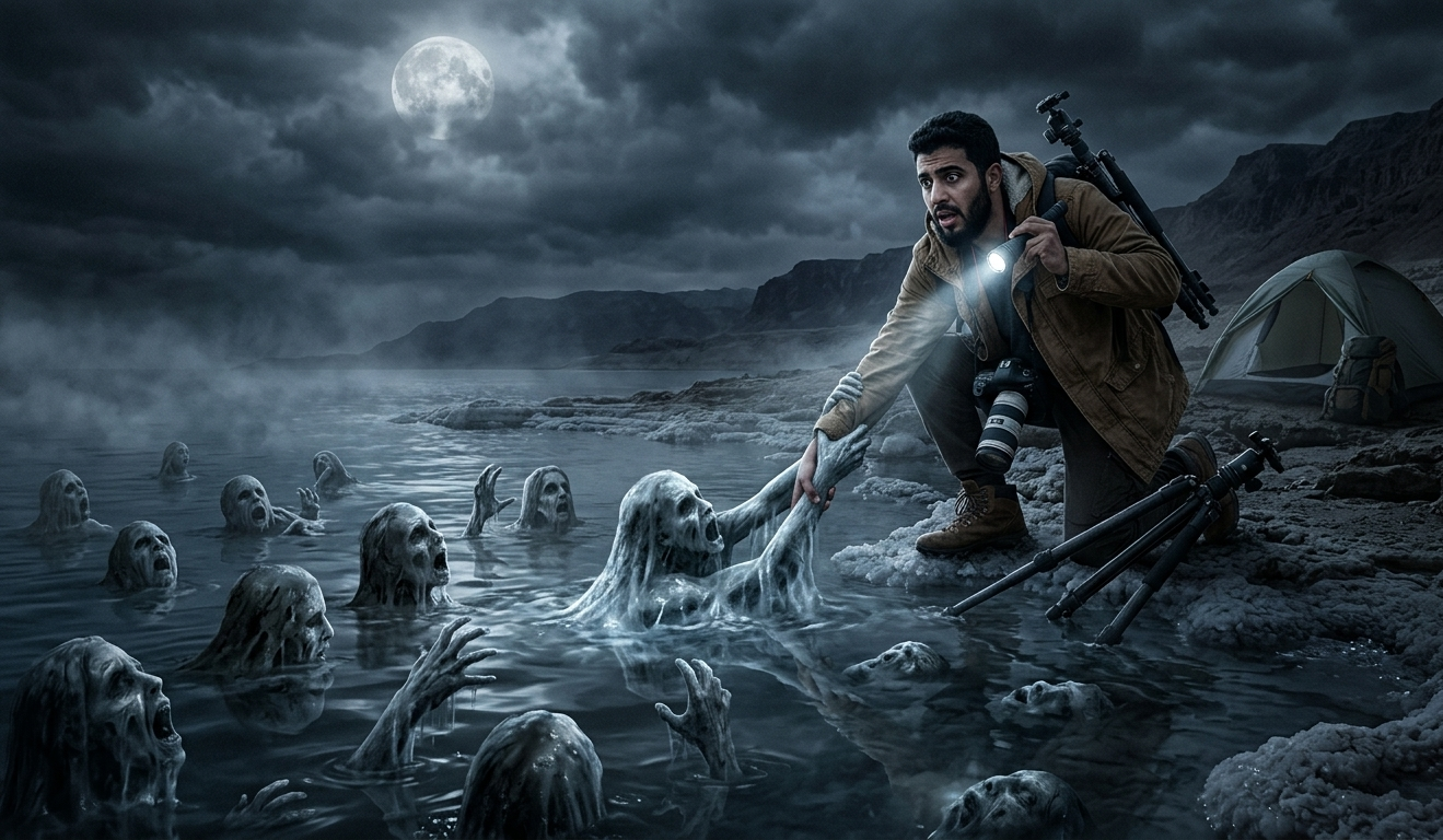 وصل الشاب كريم إلى المنطقة بعد رحلة طويلة. كان يعمل مصورًا للوثائقيات، وسمع كثيرًا عن القصص الغريبة المرتبطة بالبحر الميت. بعض السكان كانوا يقولون إن المكان ليس مجرد بحر شديد الملوحة، بل بوابة لأسرار قديمة تعود إلى آلاف السنين.